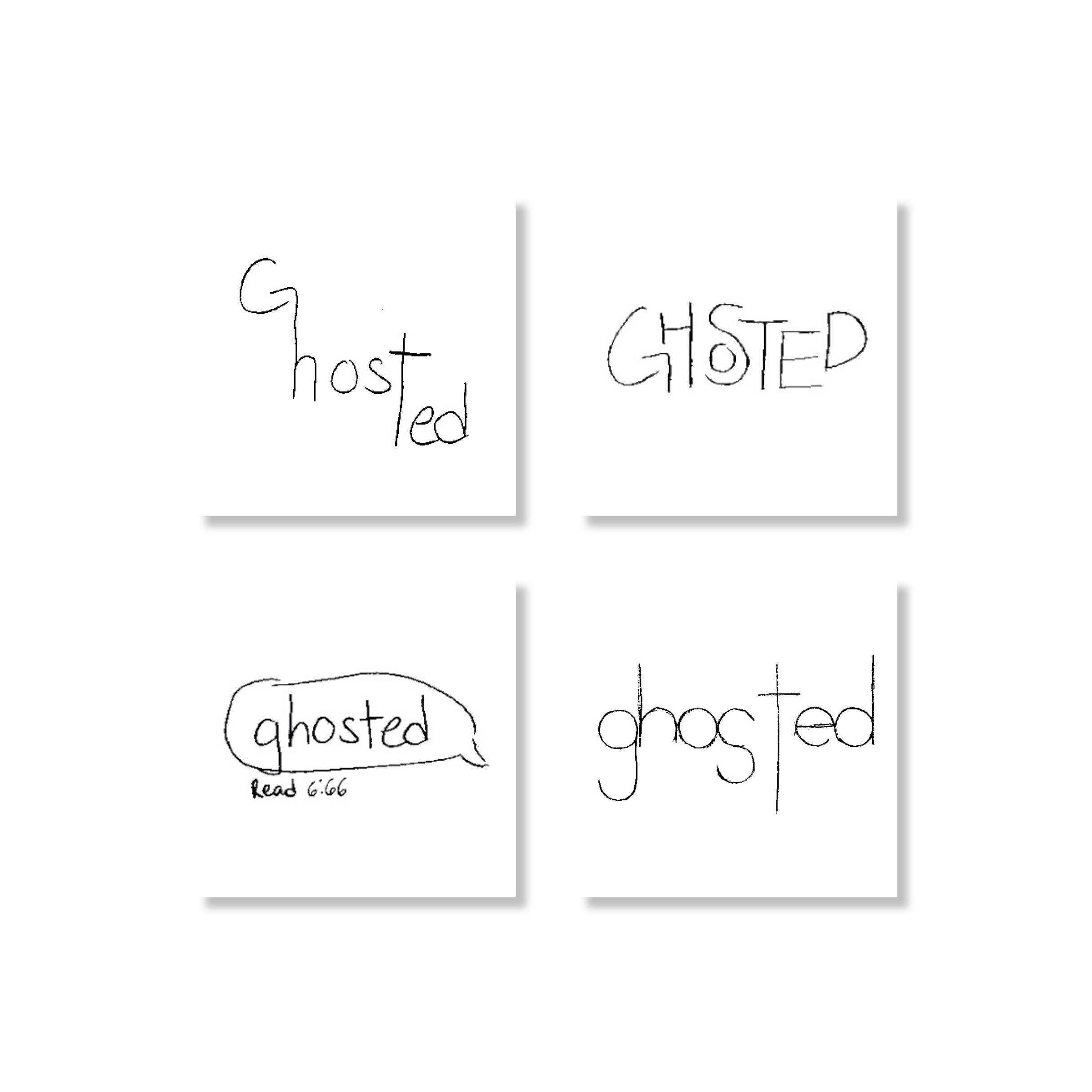 My initial logo explorations tested a range of conceptual directions. I experimented with abstracted letterforms, themes of possession, and symbolic references tied to spirituality. I also explored contemporary interpretations of “ghosting,” incorporating visual cues inspired by digital communication.